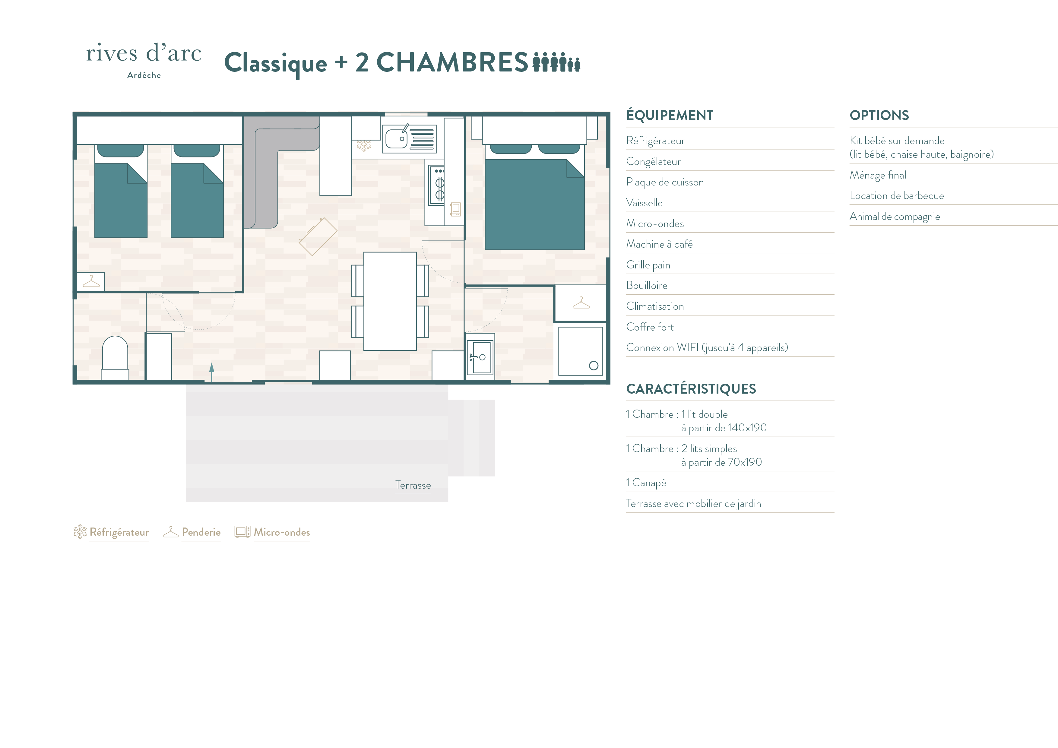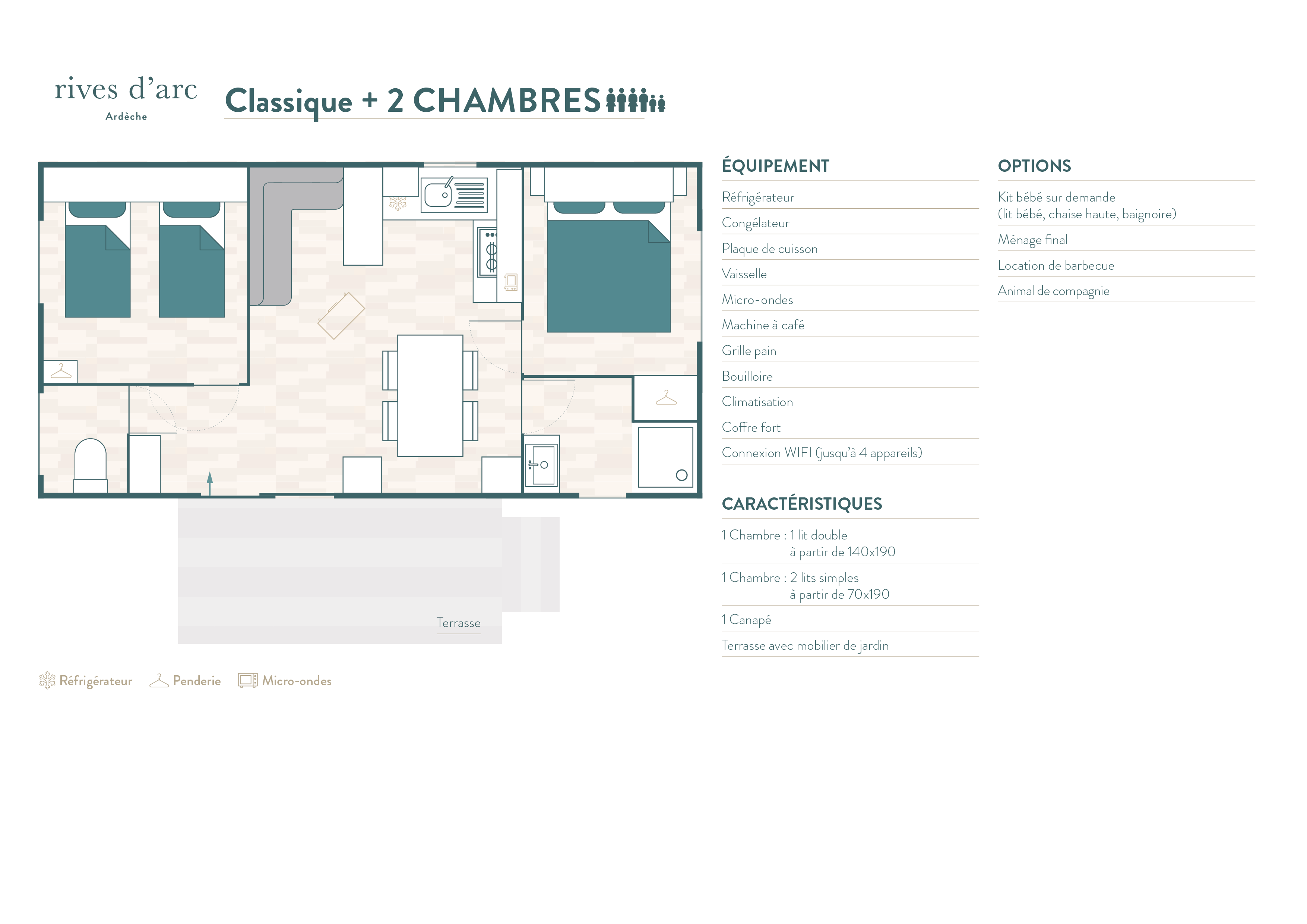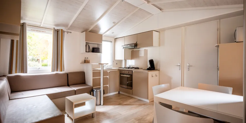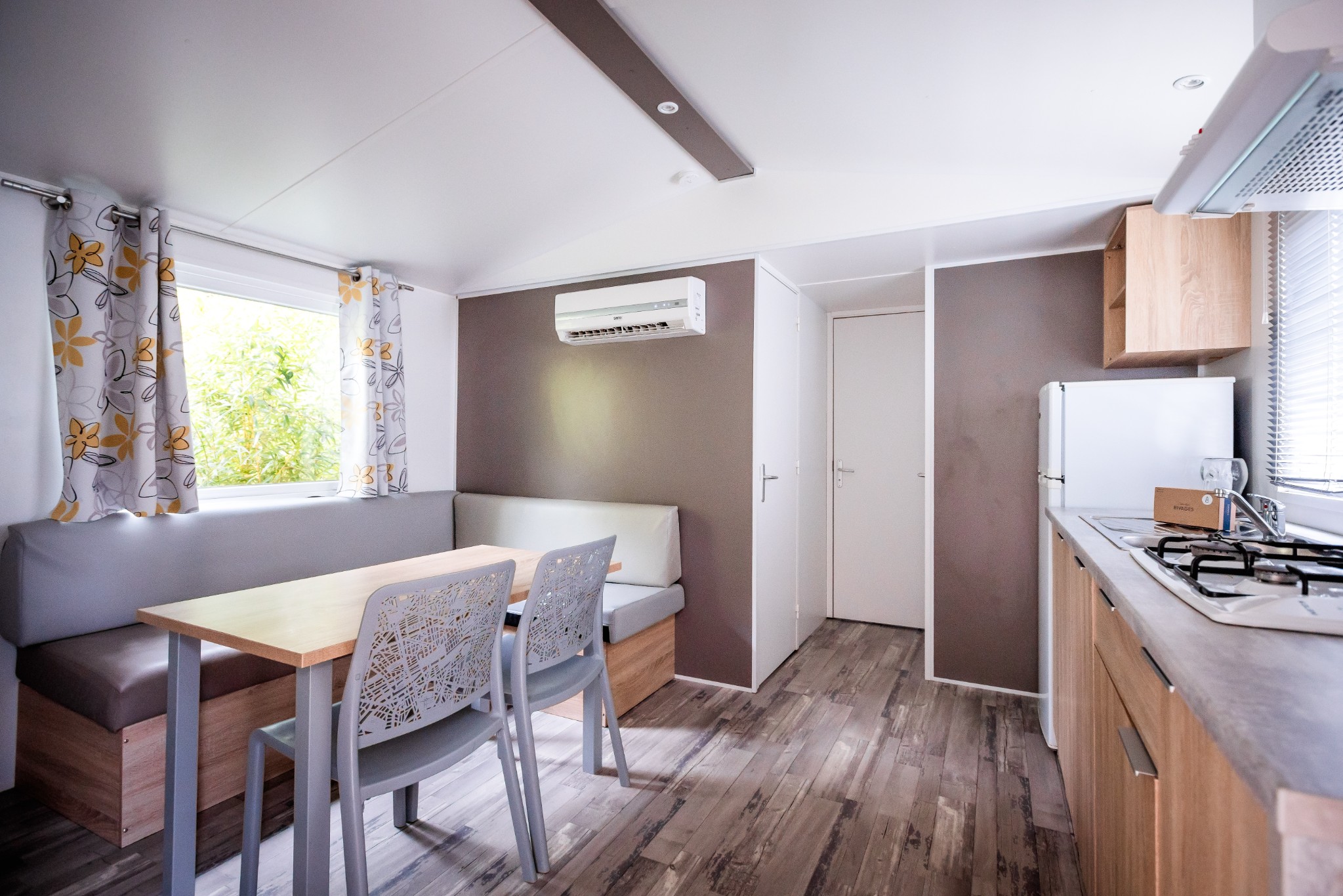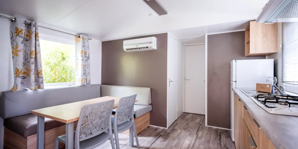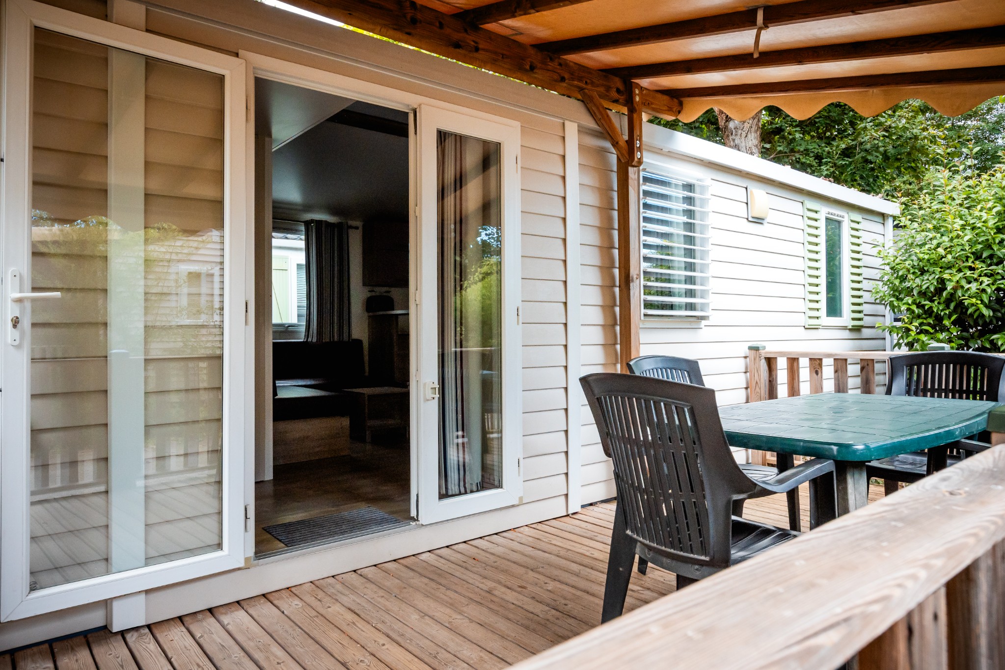 Dans une nature préservée, les mobil homes Classiques vous plongent dans un cadre apaisant en Ardèche. Son espace facile à vivre est entièrement ouvert sur l'extérieur. Une terrasse ombragée permet de se retrouver, d'être ensemble, et au loin, on entend la rivière.
